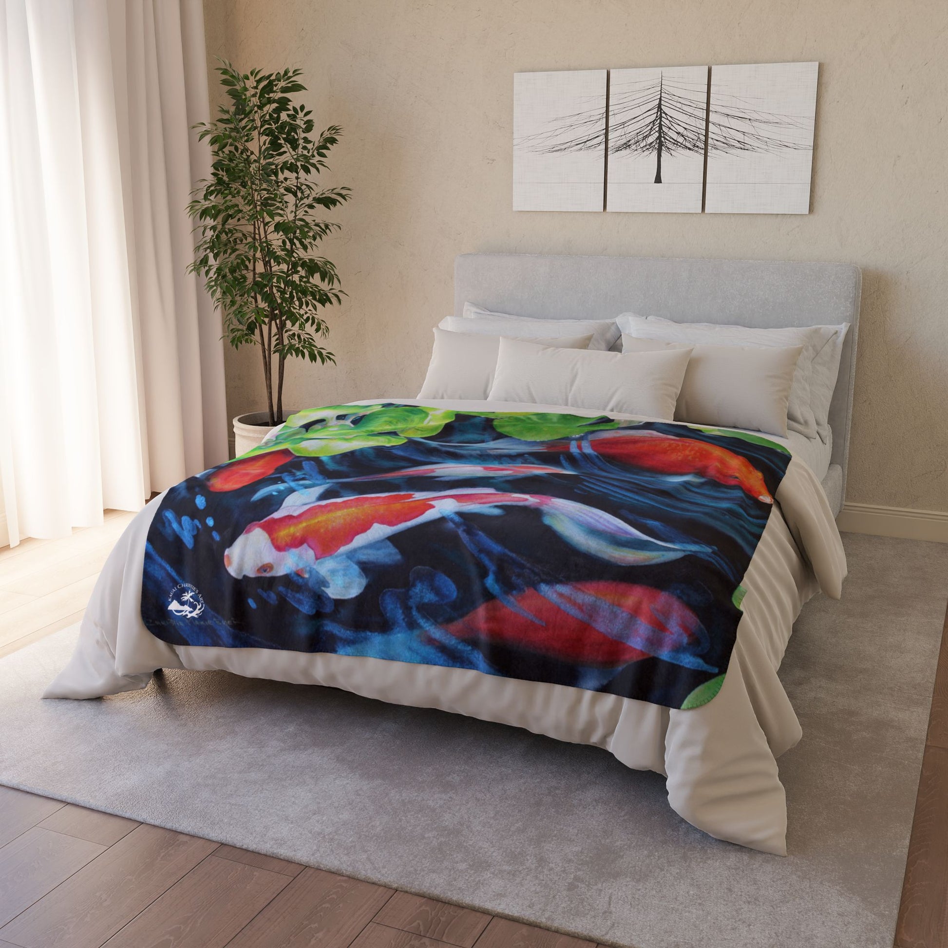 Koi Pond Fleece Sherpa Blanket — Cozy Japanese Fish Watercolor Throw